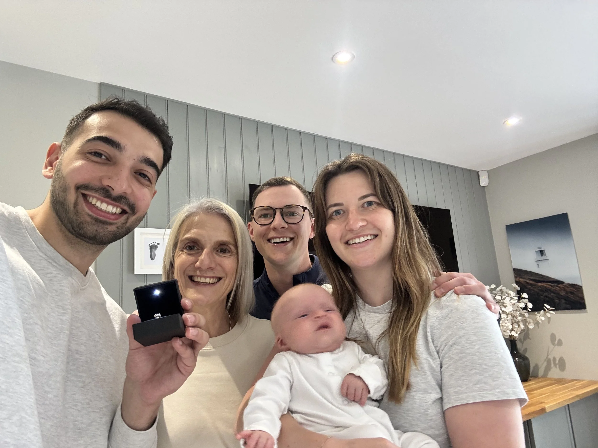 Bianca’s mom, Debra, played a vital role behind the scenes, helping Koral plan every detail while keeping it all beautifully hidden. Her aunt Kim, who just happened to be flying from South Africa to England to visit her son Keaghan and his wife Caroline with their baby Wren, agreed to be the secret courier. She carried the ring halfway across the world, tucked away, safe and sparkling.