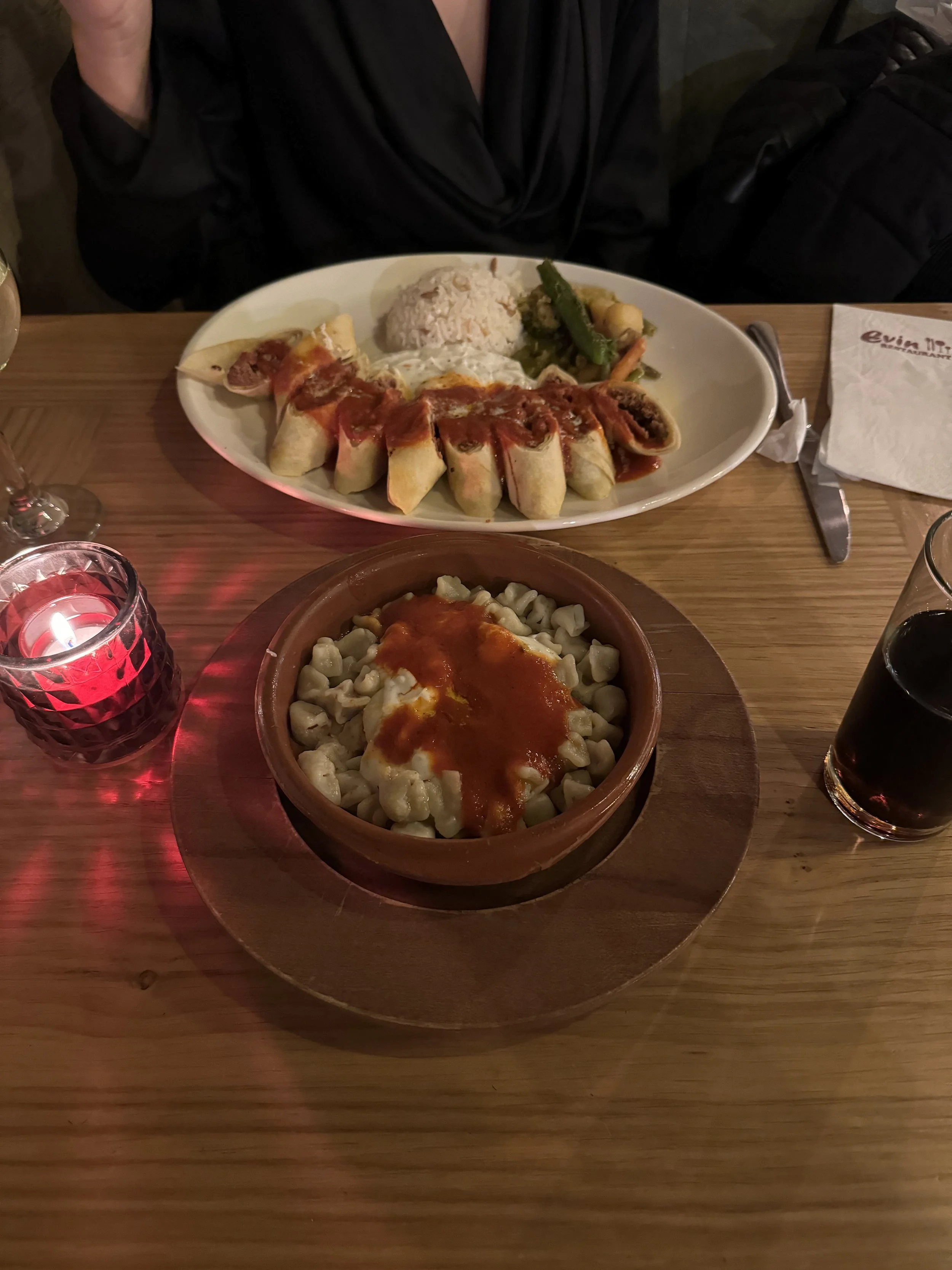 The name Evim means “My Home” and that’s exactly what it felt like. Warm lights, the scent of grilled spices, and tables full of stories. Bianca got introduced to the delicious dish called “Beyti Kebab” and got a taste of Koral’s favourite dish “Iskender”